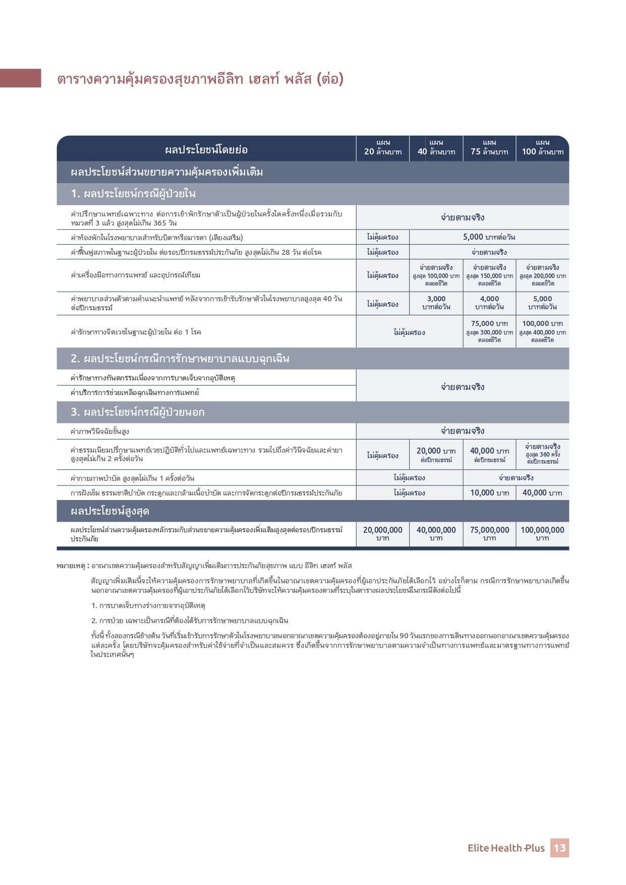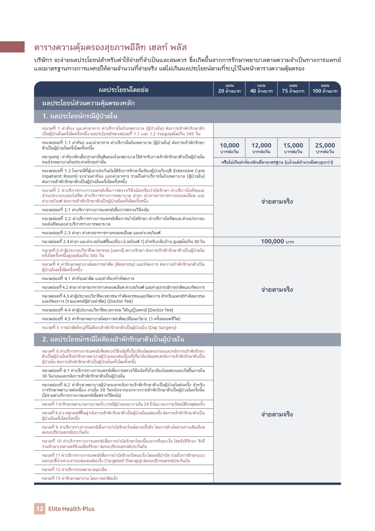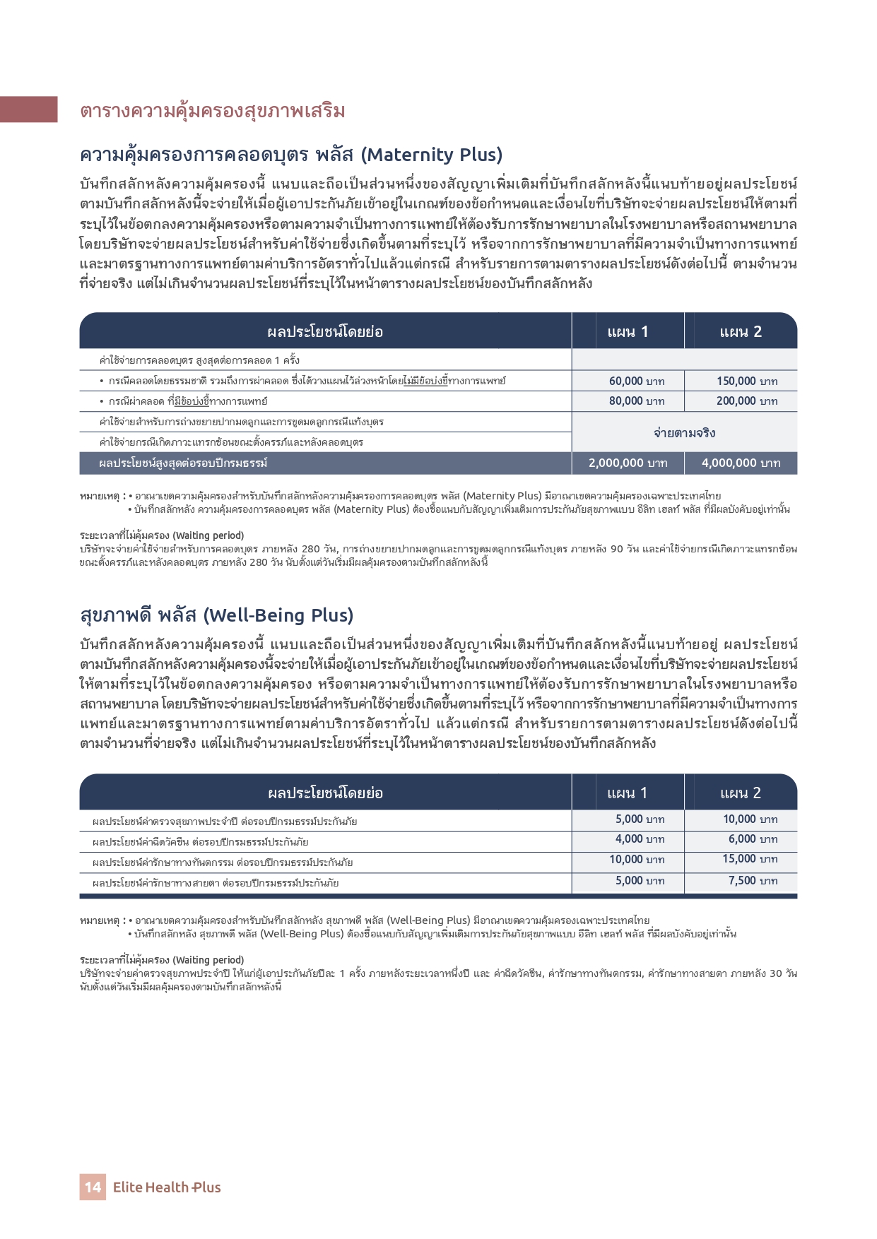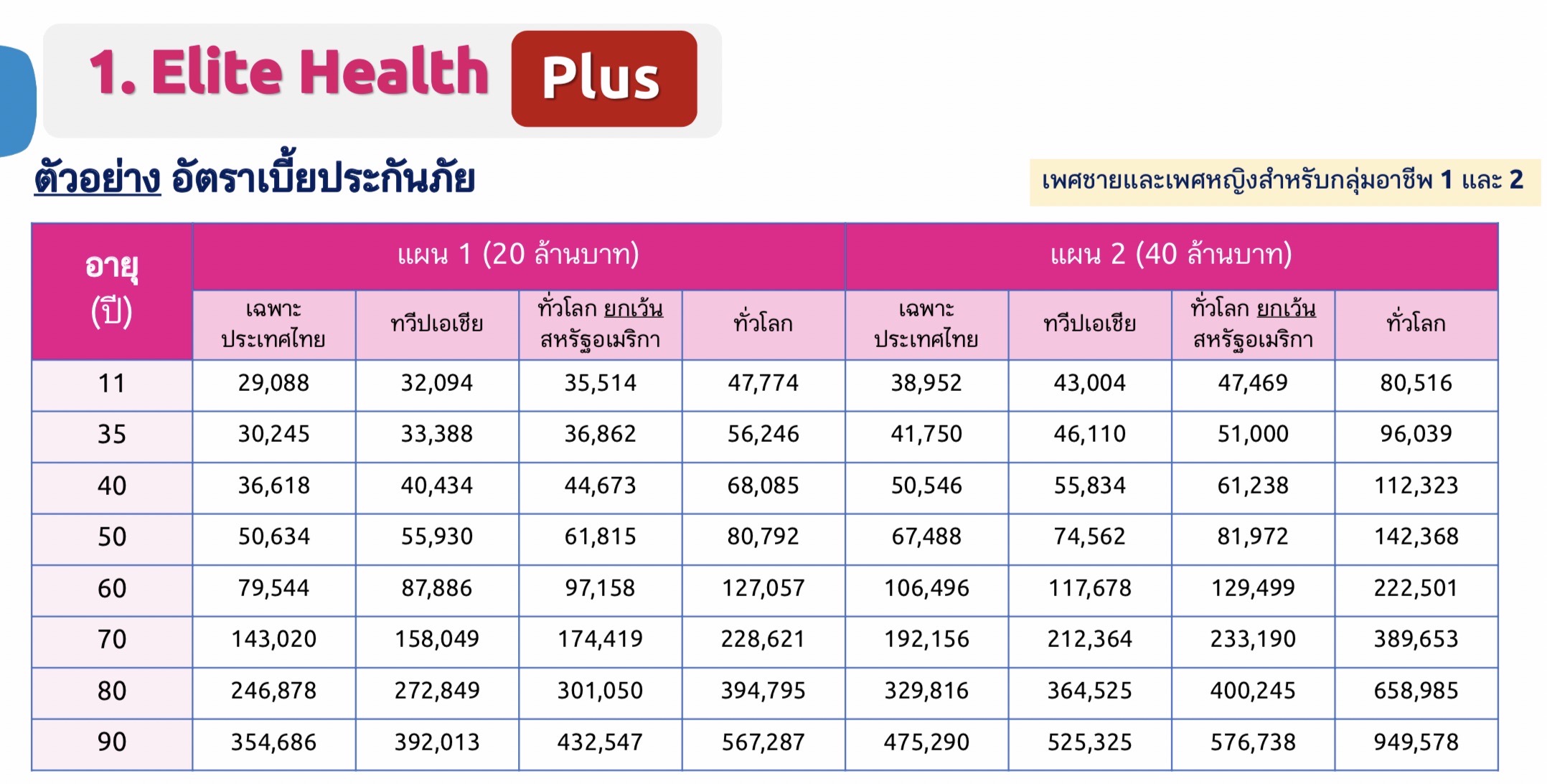 ความคุ้มครองสุขภาพ อีลิท เฮลท์ พลัส